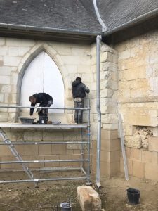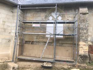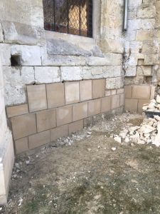 Restauration de la façade sud de l’église, avec de la pierre de CAEN (fournisseur Carrières de la Plaine de CAEN)